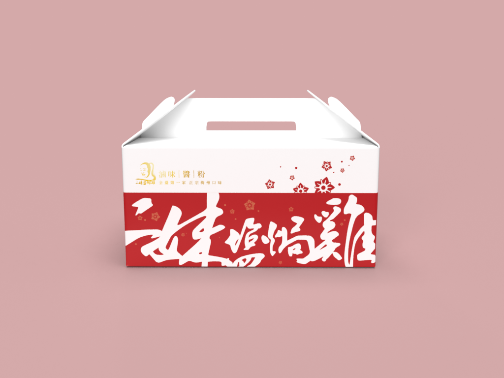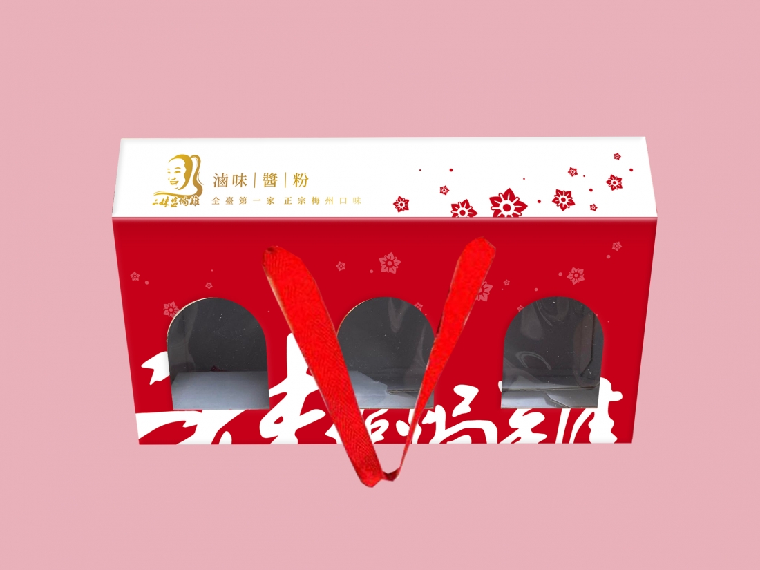 包裝設計整體視覺使用二妹鹽焗雞的標準色「紅色」為包裝主色,搭配白色呈現現代簡約風格,加上顯眼的LOGO,強調品牌,也是適合節慶運用的禮盒。