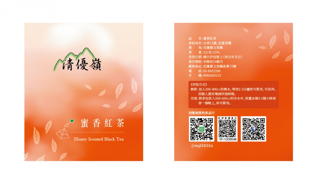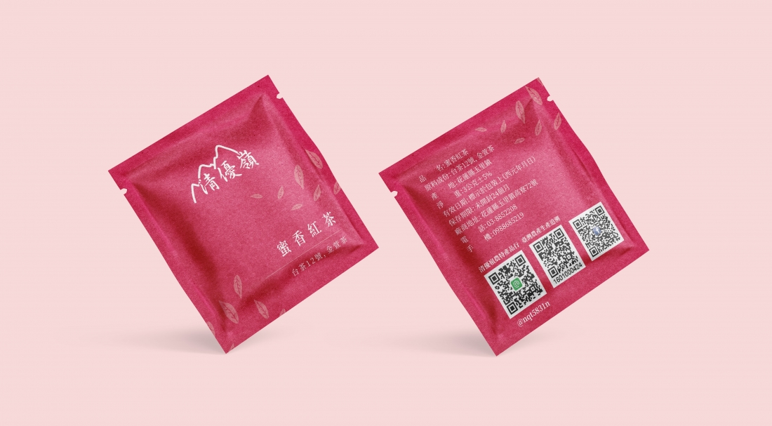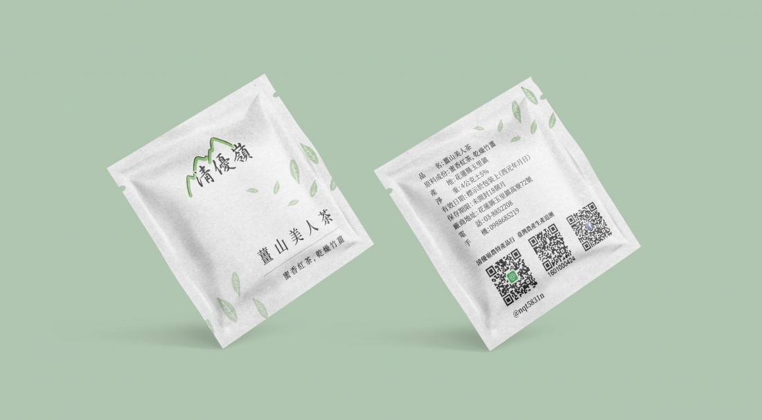 茶包包裝的設計,同樣採簡約風格,沒有多餘的設計圖案,只有簡單的LOGO、文字、品名及淡淡的小茶葉圖案,著重於文字排版,讓畫面看起來雖然單調卻不呆版。