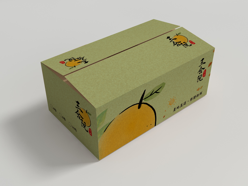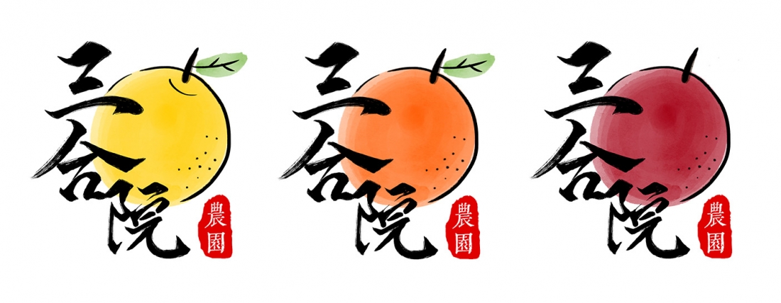 LOGO設計走向偏傳統水墨風,但又帶有現代風格。LOGO中圖案分別設計了三種水果:梨子、百香果、橘子,將三種水果用簡約加可愛風格的水墨畫法呈現,「三合院」三個字用書法作為標準字,並將「農園」二字以落款蓋章的方式設計。