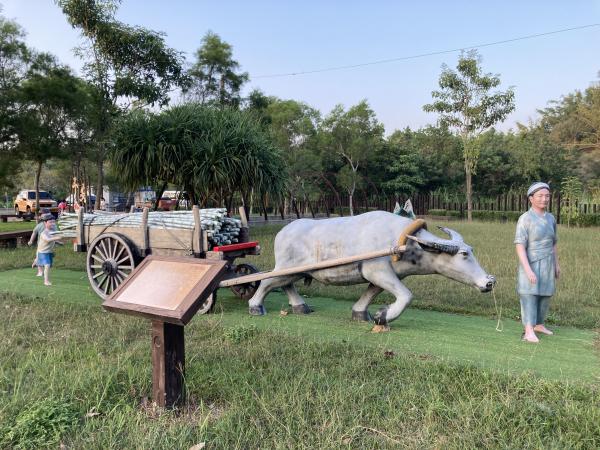 蔗埕廣場位於臺南市左鎮區,是融合歷史記憶與文化再現的特色景點。過去這裡是甘蔗集散的重要地點,牛車運送甘蔗至此暫放,等待小火車載往糖廠,是昔日製糖產業最熱鬧的場所。如今的蔗埕廣場以「甘蔗文化」為主題,設有牛車裝置藝術、鐵軌廊道、復古月台與糖廠機具展示區,重現昔日製糖盛景。廣場內還設有導覽與互動遊具,讓遊客在遊玩的同時了解左鎮的糖業歷史與農村生活。漫步於此,能感受紅磚老街的懷舊氛圍與在地文化的純樸風情,體驗左鎮由糖香編織出的時代記憶。